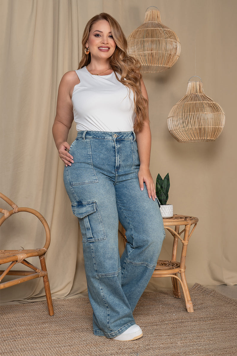 Jean Cargo Tiro Alto Efecto Dirty Marca Trucco´s Plus Size