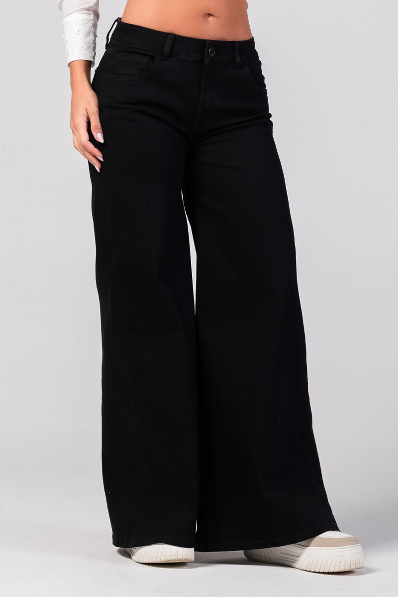 Jean Palazzo Tiro Alto, Bolsillos posteriores y delanteros funcionales, Silueta Semi Holgada con elongación. Disponible en color Negro.